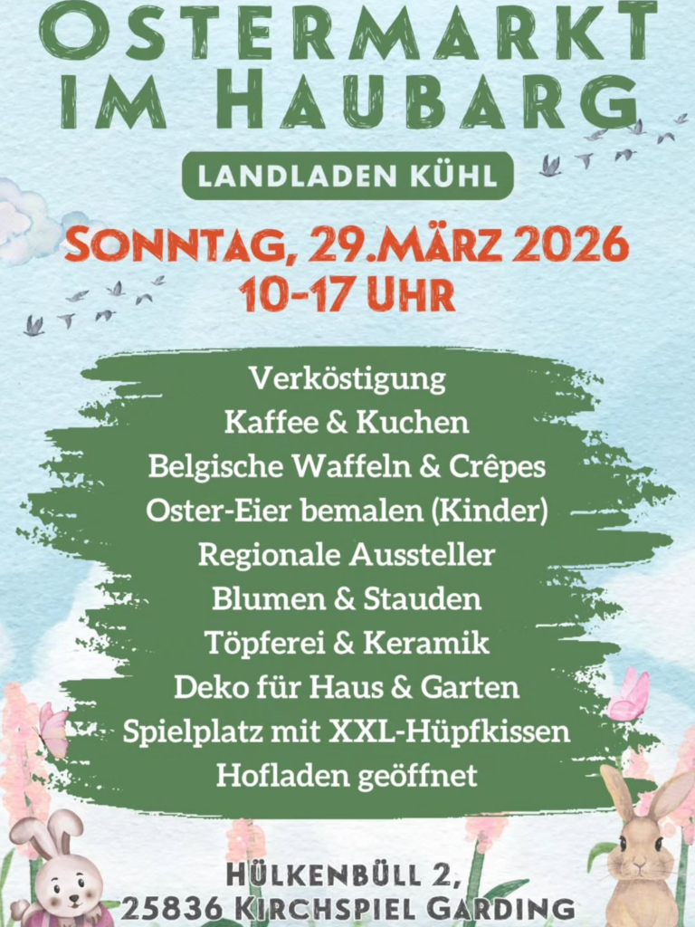Am Sonntag, den 29. März 2026 bin ich mit meinem Verkaufsstand beim Ostermarkt dabei! Ihr findet mich von 10-17 Uhr beim Landladen Kühl mit vielen tollen Überraschungen!